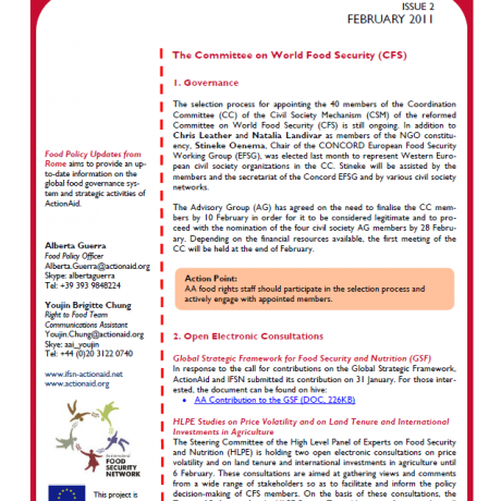 Food Policy Updates from Rome aims to provide an up-to-date information on the global food governance system and strategic activities of ActionAid.